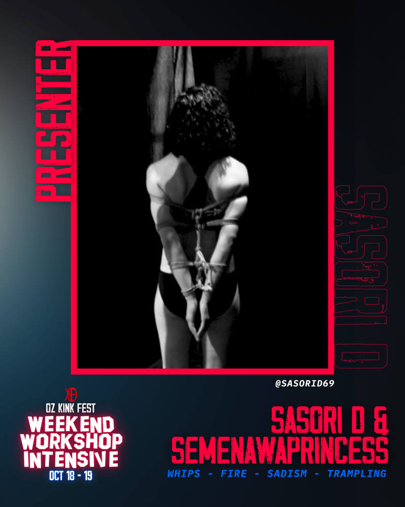 Known for his switchy energy, interactive teaching style, and a commitment to keeping things playful yet precise, Sasori’s classes focus on reaction-oriented skill sets — leaning into sensation, creativity, and consent-driven chaos. Whether you're here to learn, squirm, or both, you can expect an engaging ride at any of his workshops.